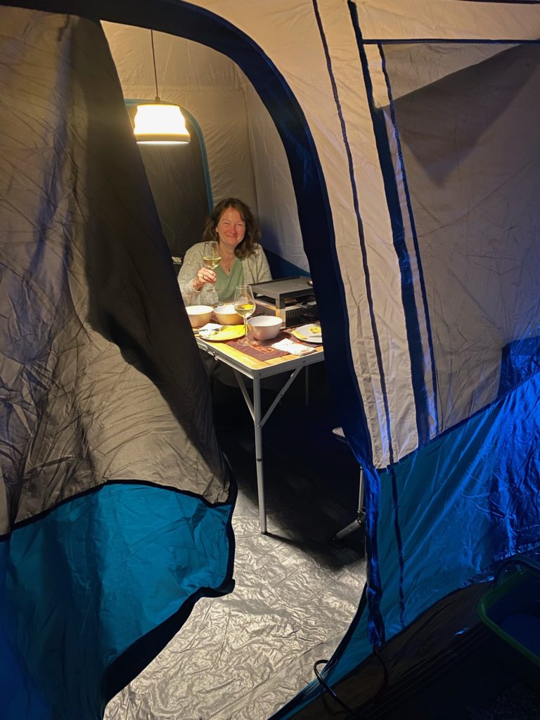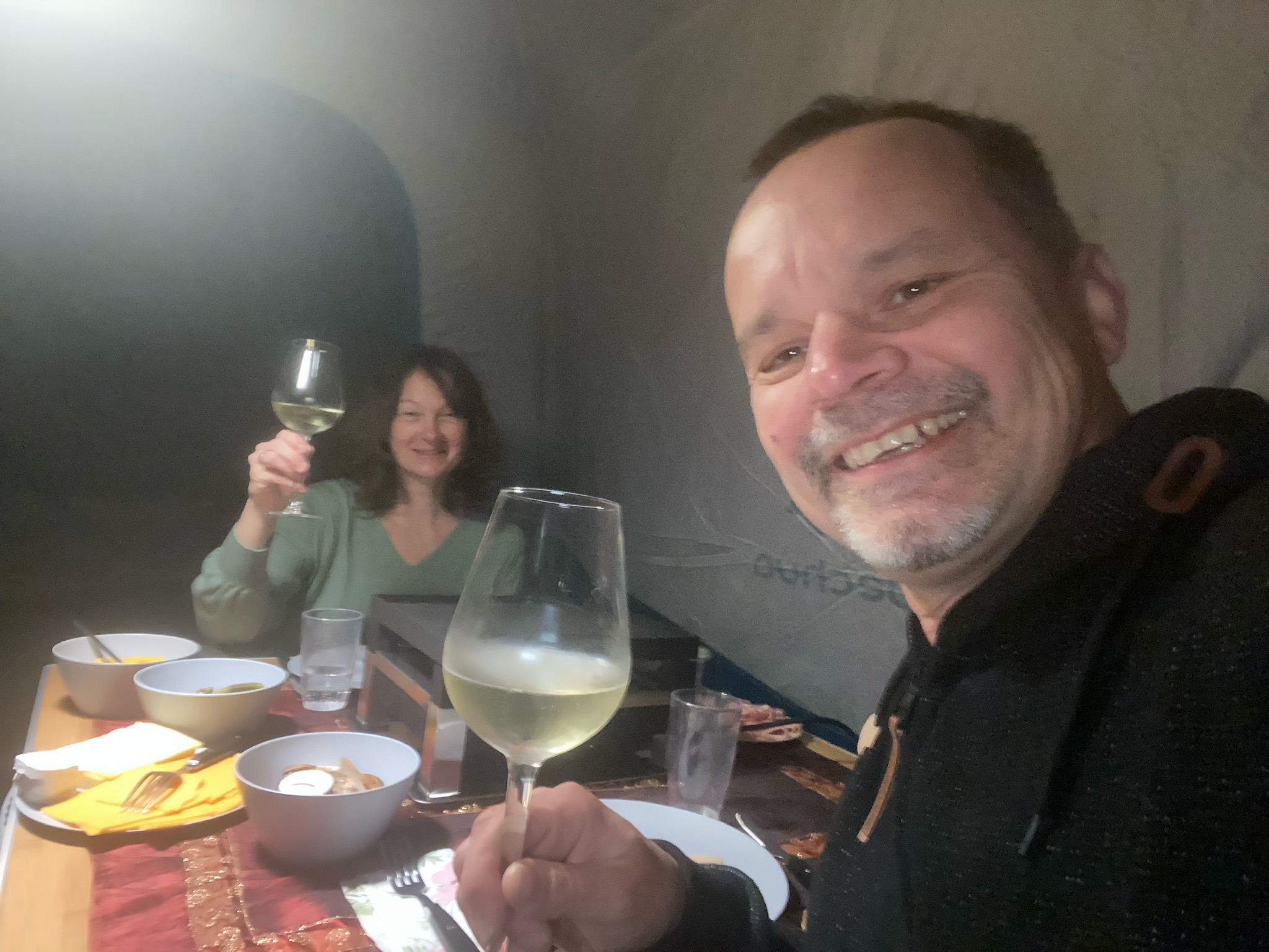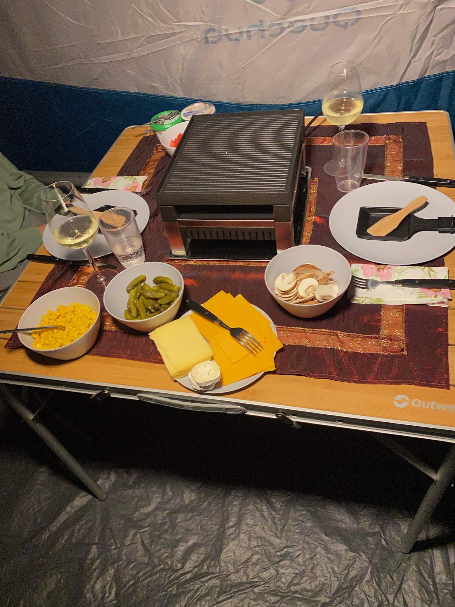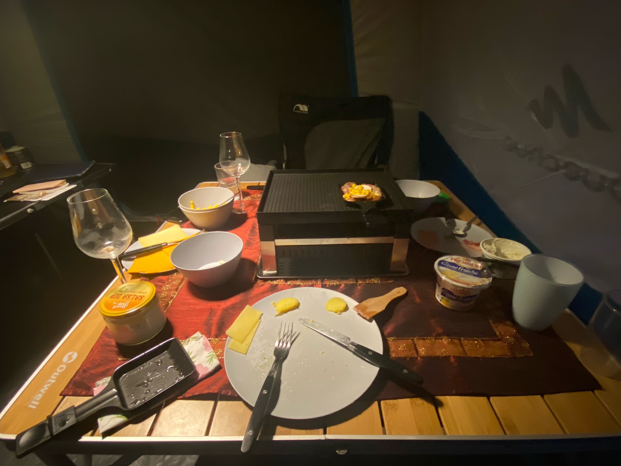 Das Zelt war in kürzester Zeit aufgebaut und einem heiligen Abend im Zelt (nicht in der Krippe) mit Raclette stand nichts mehr im Wege.